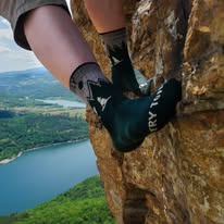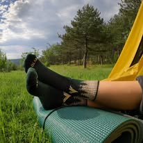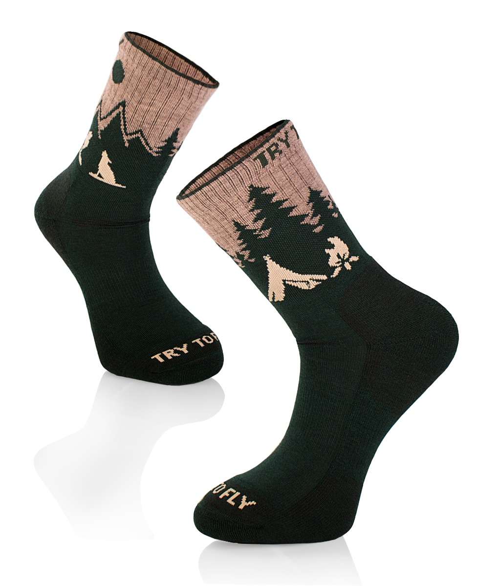 Merino vilnas pārgājienu zeķes ar vilka attēlu – tumši zaļas