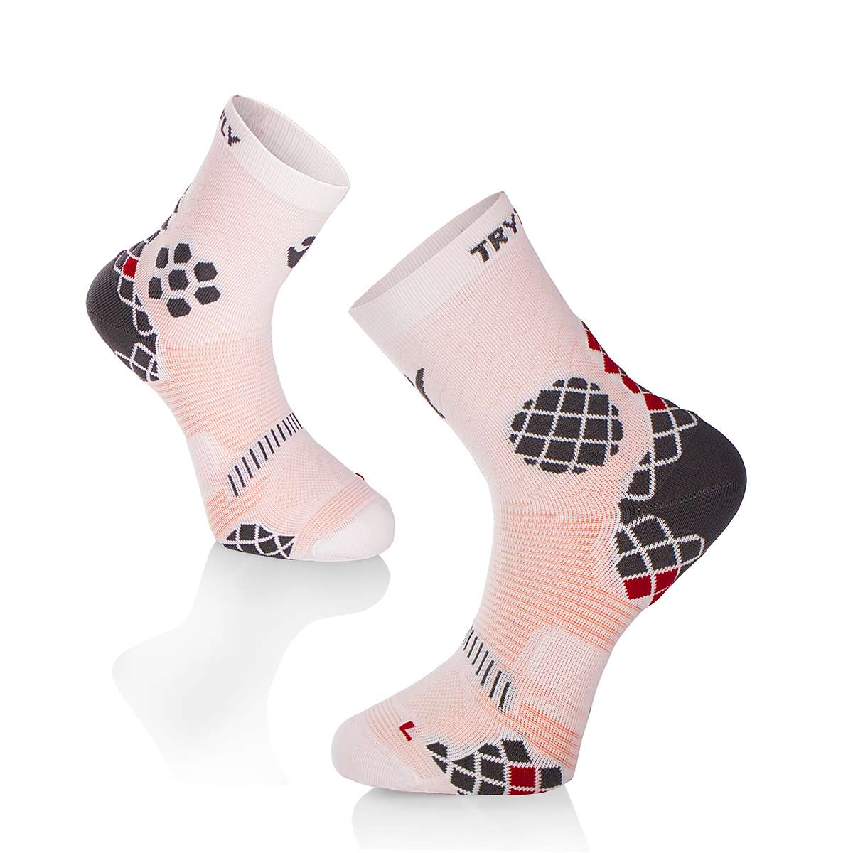 TRY TO FLY kompresijas zeķes ir neaizstājama ikviena sportista ekipējuma sastāvdaļa. Tās ir piemērotas maratoniem, riteņbraukšanai, skriešanai un citiem sporta veidiem, kā arī intensīviem treniņiem.